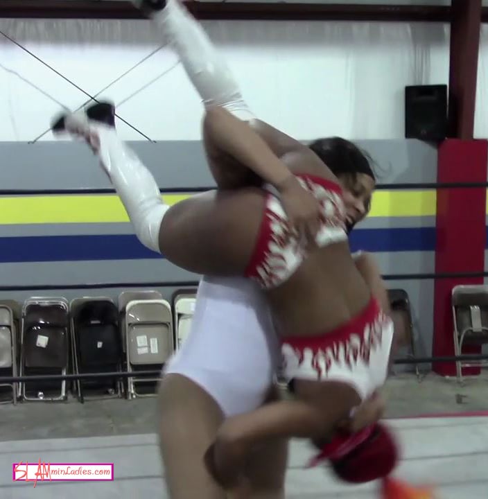Cami unloads with shoulderblocks, Clotheslines, Bodyslams and splashes, as well as grinding submission holds like an over-the-knee Backbreaker, Rear Chinlock and belly claw. Kiera gets in the occasional offensive strike, but Cami is always quick to extinguish the Girl On Fire’s momentum every time.