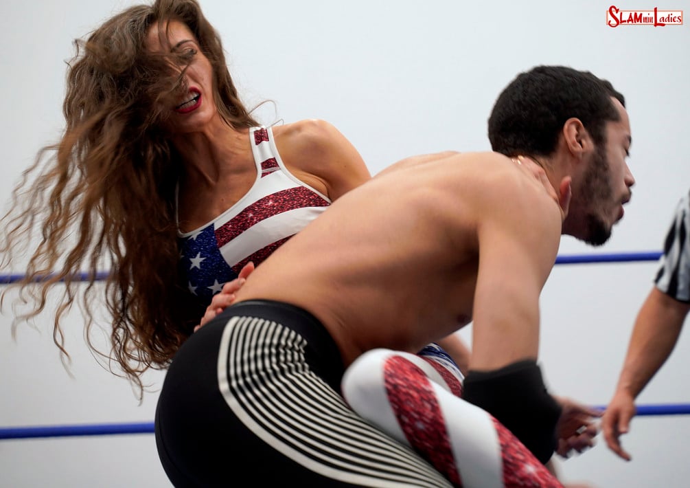 Amber's total and utterly one-sided domination of Brian continues until she delivers another Pedigree. And this time, Amber does at least show Brian the mercy of pinning him for the full 3 count. Although, true-to-form, Amber does so with a pin that is as much a victory pose as it is a pin. Still, after such a dominant performance, who's to say that it isn't deserved?