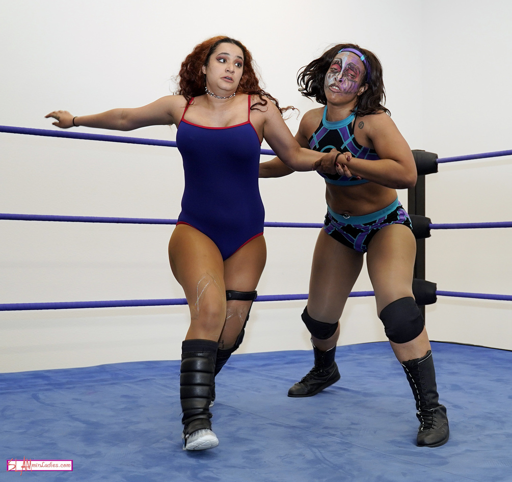 After a testy exchange during the opening introductions, Didi taunts Holidead only to pay dearly with a brutal kick to the breadbasket. Holidead unloads on Didi and incurs the wrath of the referee as she repeatedly drives her face first into the corner, chokes her on the ropes, and executes a vicious hair stand. Didi fights back with kicks to Holi’s midsection, a stunning savat kick and hip attack in the corner, but Holidead shrugs off Didi’s best offense.