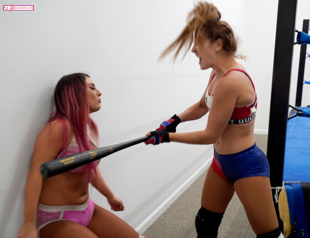 Tesha seems to have copied some of a comic book villain's unstable behavior as she is seen dragging Alex through the door, upset as she is with the attitude of new people around here. Tesha is determined to teach Alex some manners while taking her for an involuntary ringside trip. She slings Gracia into the walls and hits her with a baseball bat.