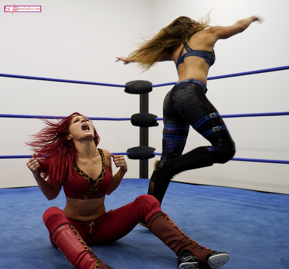 Tesha's neck receives no mercy as Ivelisse presses it against the ropes and stomps on it. Another wicked snapping motion has Tesha completely in a daze and lucky to still be fighting. A sharp DDT and Camel Clutch only add to Tesha's misery, setting her up for more neck-snapping action. Shockingly, there's life in Tesha yet and she fights back to give Ivelisse a taste of her own medicine. Ivelisse is run hard into the turnbuckle, stomped on and-you guessed it-subjected to some brutal neck attacks.